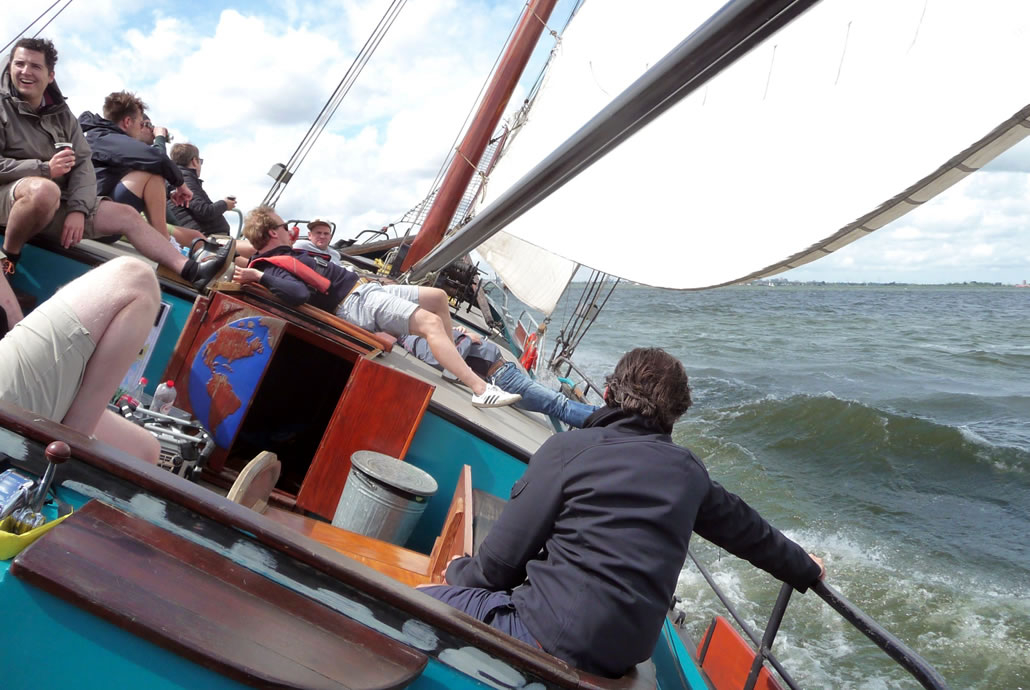 Angesteckt von der Begeisterung der Besatzung wird jeder auf der Dankbaarheid das Steuer ausprobieren wollen. Das ist nicht schwer und macht riesig Spaß! Die Dankbaarheid hat ein besonders schnelles Unterwasserschiff, durch seine Form ist sie ganz einfach zu steuern, egal ob viel oder wenig Wind weht. Für eine Regatta mit mehreren Schiffen eignet sich die Dankbaarheid also auch ausgezeichnet!
